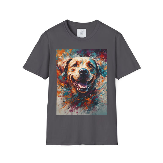 Happy Dog, Running Dog, Yellow Dog, Mix Breed, Lab, Multicolor Unisex Softstyle T-Shirt